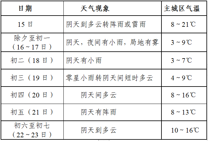 春节假日期间,贵州省天气总体平稳,无低温雪凝天气!
