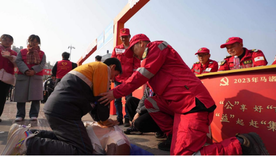 在“战狼”应急救援演练区内围满了群众,“战狼”户外公益救援队的队员们正在为群众开展应急救援的讲解,队员们从急救重要性、急救基础知识心肺复苏等方面进行讲解,并现场模拟心肺复苏术示范操作。来自马渚镇中心小学的学生表示听了急救知识后受益匪浅,了解了“黄金4分钟”的重要性。