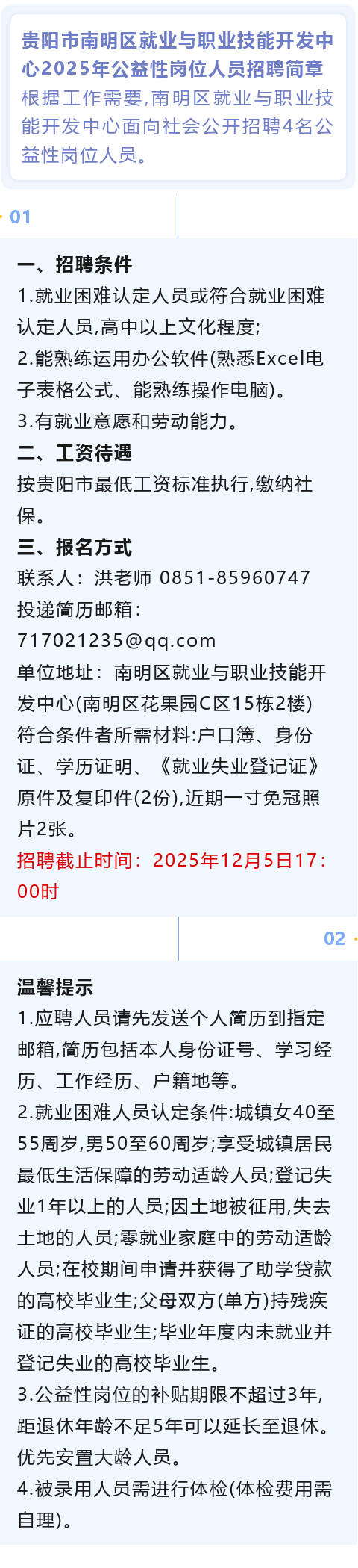 【事业单位】贵阳市南明区就业与职业技能开发中心招聘!高中起报!