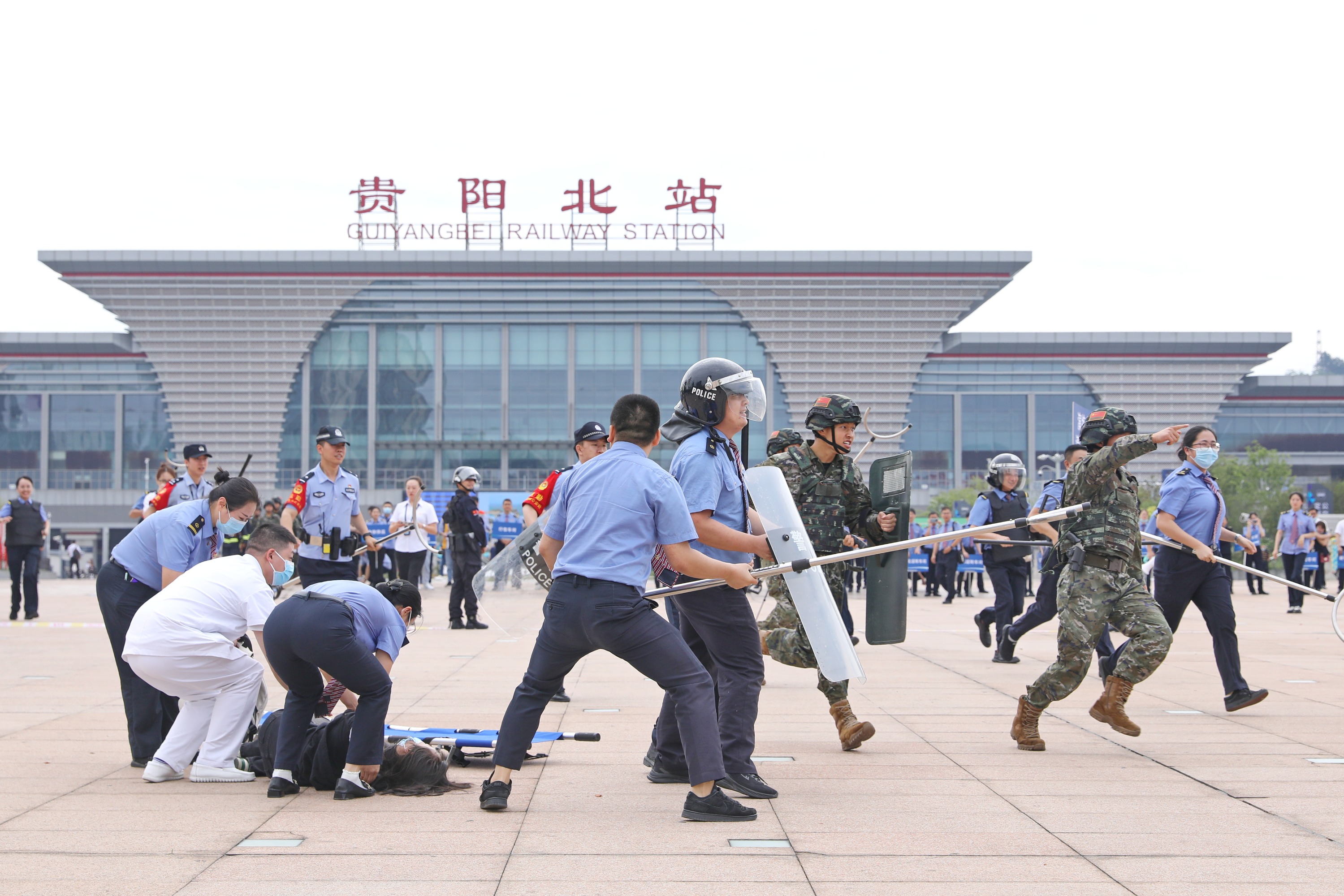 为扎实推进“安全生产月”活动开展,6月9日上午,贵阳铁路联合地方消防、武警、公安、医院等单位200余人,在贵阳北站开展消防、反恐联合演练。此次演练旨在加强铁路车站周边区域综合管理,保障交通枢纽功能,进一步健全综合治理联勤联动机制,维护车站站区治安稳定,进一步强化和落实路地联勤联动机制,维护车站良好治安秩序,确保站区治安稳定,运输安全畅通。