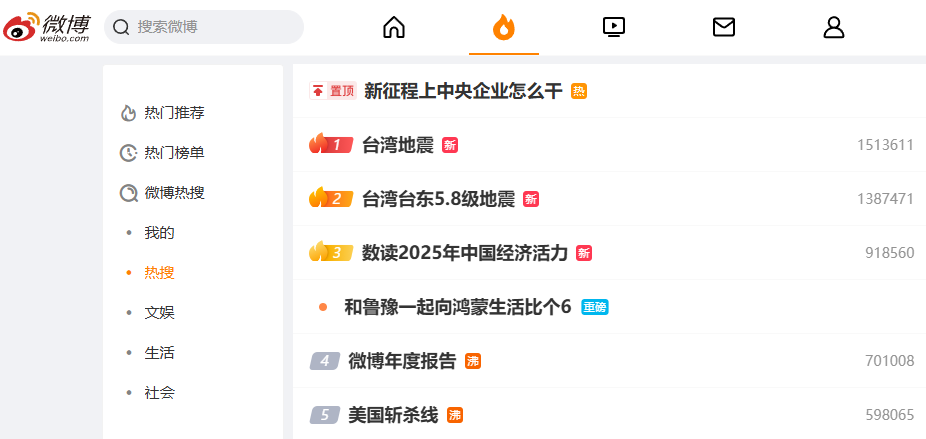 打开动静新闻客户端,刷动静听新闻。社交媒体热点打捞,洞悉社会情绪,最后来看各大热榜,明天再见!
