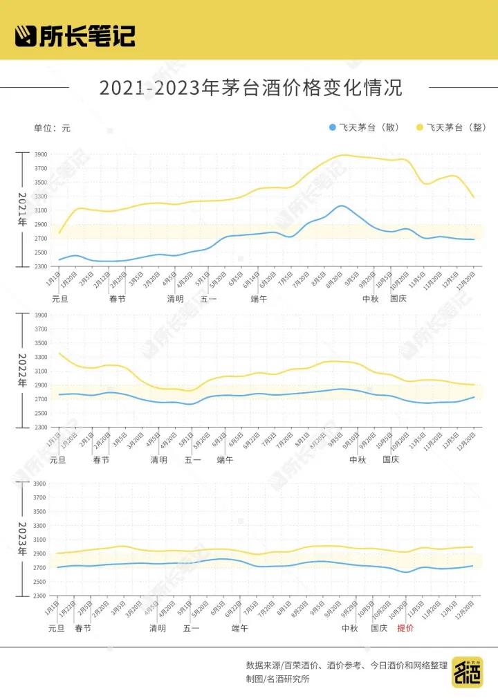 从产业端来看,名酒研究所(ID:MJYJS2024)对过去三年茅台酒批价的梳理发现:不管是受经济、环境还是消费淡旺季的影响,茅台酒价格始终都在波动。