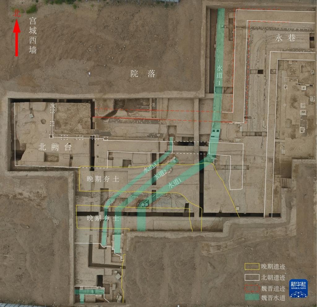 据北魏地理学家郦道元所著《水经注》记载:“渠水又东历故金市南,直千秋门,古宫门也。又枝流入石逗伏流,注灵芝九龙池。”考古人员表示,新发现的魏晋时期水道遗迹,与这一文献记载相吻合。