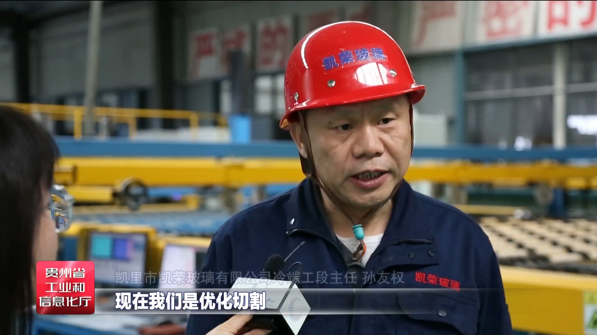 凯里市凯荣玻璃有限公司冷端工段主任孙友权说,现在我们是优化切割,先进设备,直接用电脑输入规格,就自动把玻璃完整无误切好,不坏一片玻璃。