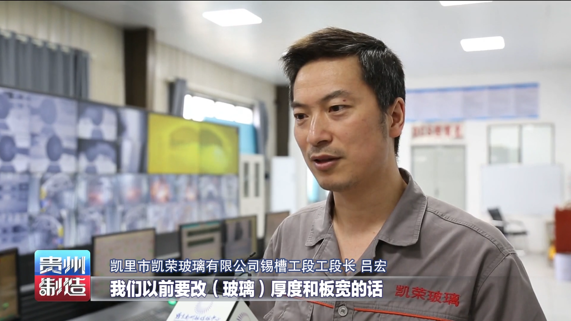 凯里市凯荣玻璃有限公司锡槽工段工段长吕宏说,以前要改玻璃厚度和板宽的话,南北锡槽两边的话都需要有人拿着工具到现场去,改变拉边机的角度、进伸。但是我们现在通过电脑,它自动到位,给它指令就行了,以前改一次版的话可能要一个小时,现在十来分钟就解决了。
