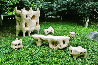从此,王文超和团队尝试将现代艺术设计理念融入这项传统艺术。他们认为,藤作为工艺材料,具有自然属性和很强的张力,这契合现代审美趋向。基于这样的思考,她和团队设计了一组现代艺术风格的藤编家具。“这款家具以溶洞、天坑的奇特景象为设计灵感。”王文超认为,藤的柔韧性和可塑性使藤编工艺成为制作这款家具的最好选择。
