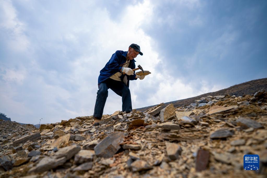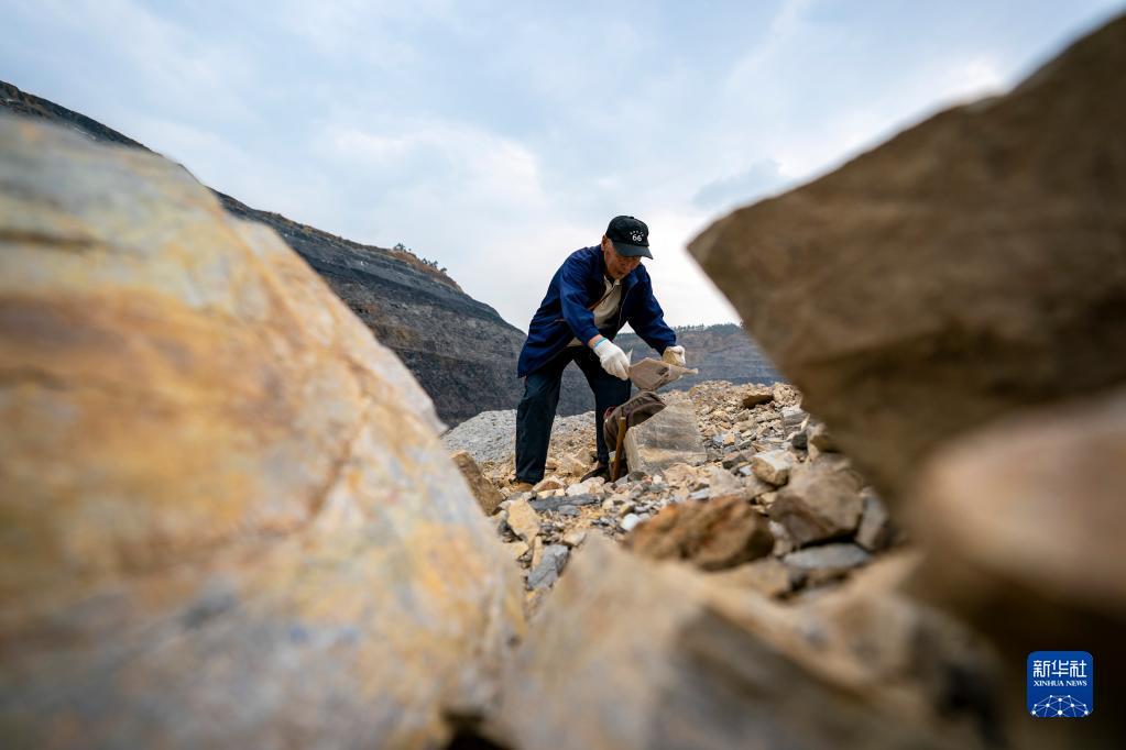 张世山在昆阳磷矿矿坑里搜寻化石(5月10日摄)。新华社记者 陈欣波 摄