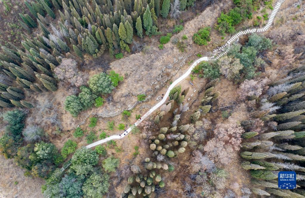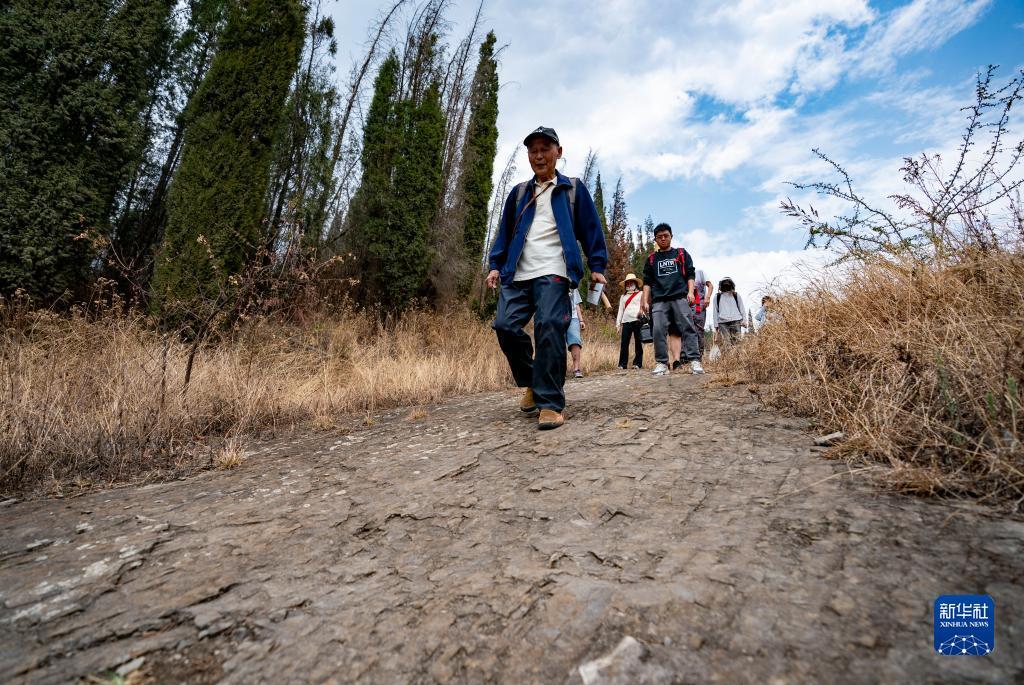 张世山(左一)在巡护梅树村剖面(5月10日摄)。新华社记者 陈欣波 摄