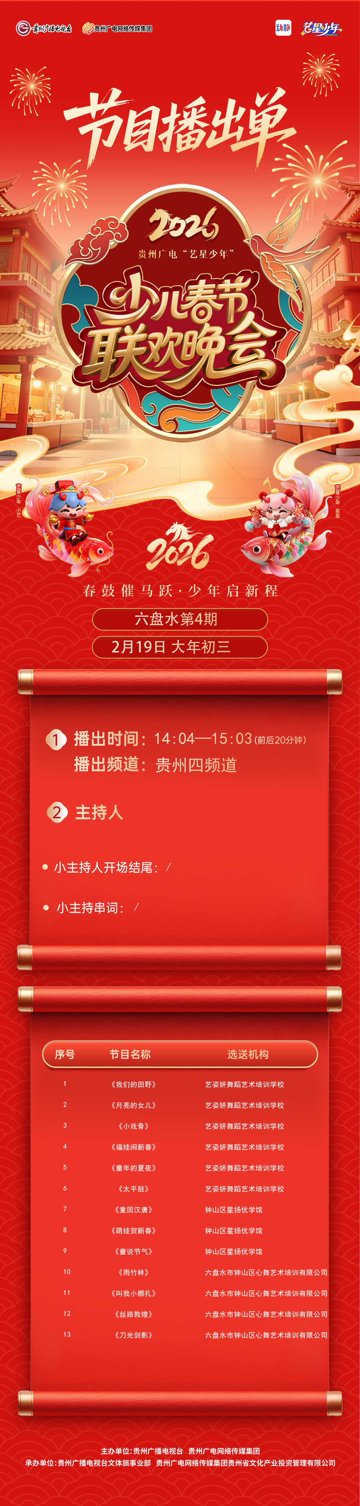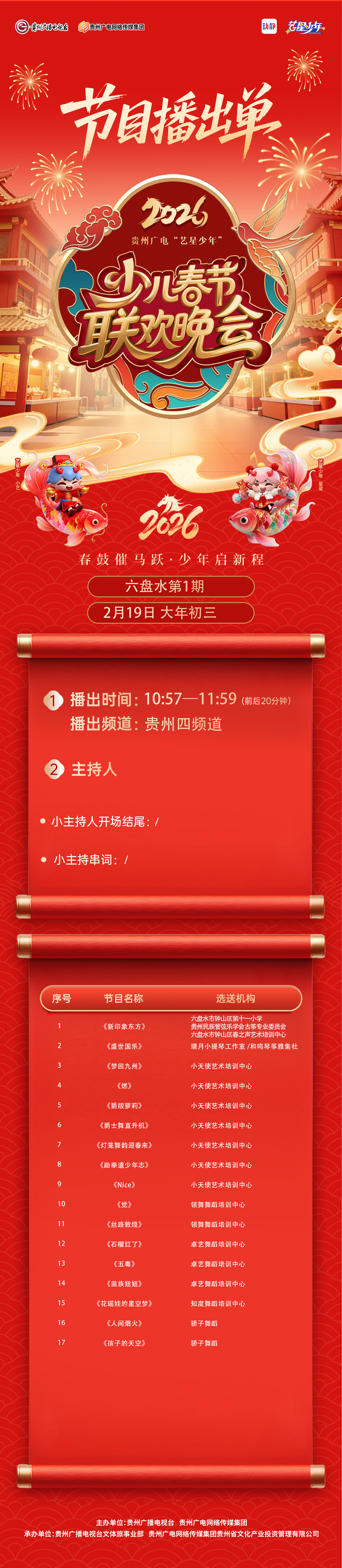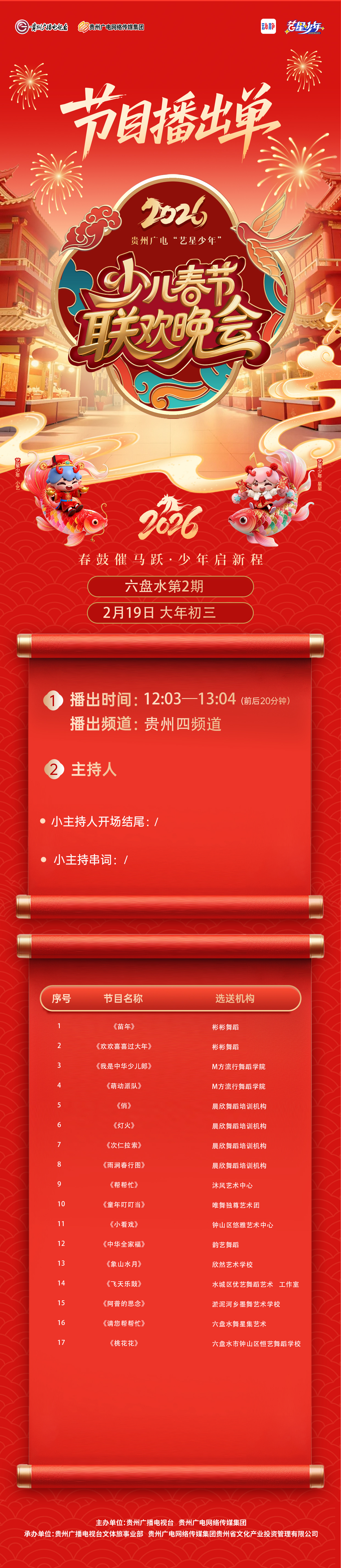 【六盘水播出通知】贵州广电2026“艺星少年”少儿春节大联欢活动——节目播出通知!!!
