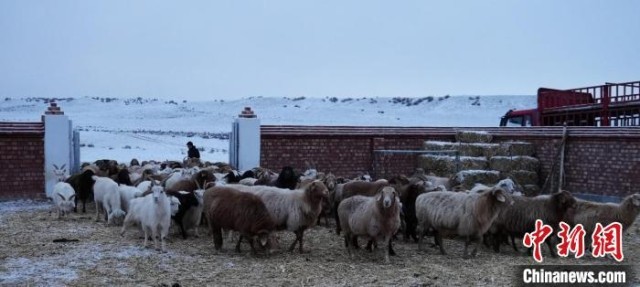 牧民将羊群赶到远冬牧场的暖圈里。张福新 摄