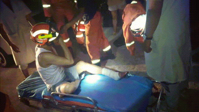 据当事人胡先生介绍,事发当天,他与另一个朋友相约到此钓鱼,当时天比较黑,在钓鱼过程中,不慎滑倒,导致脚部受伤,无法行走,所以报警求助,幸亏消防救援及时,其身体除脚部受伤外并无大碍。