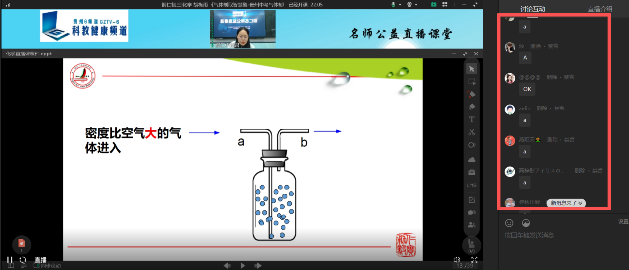 直播期间好评如潮,师生频繁互动,激发起更多学生对化学学科的喜爱。