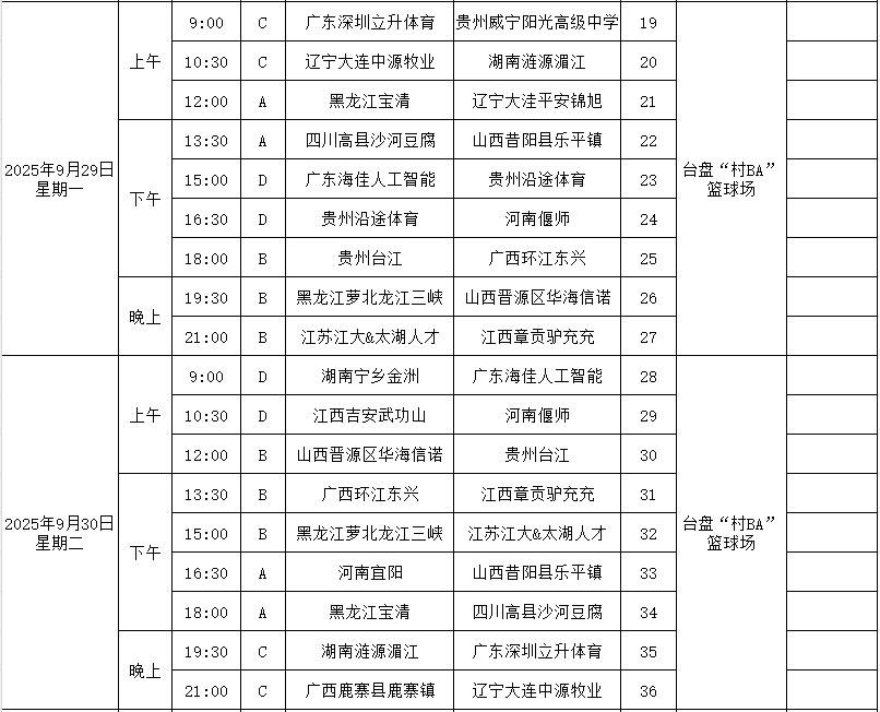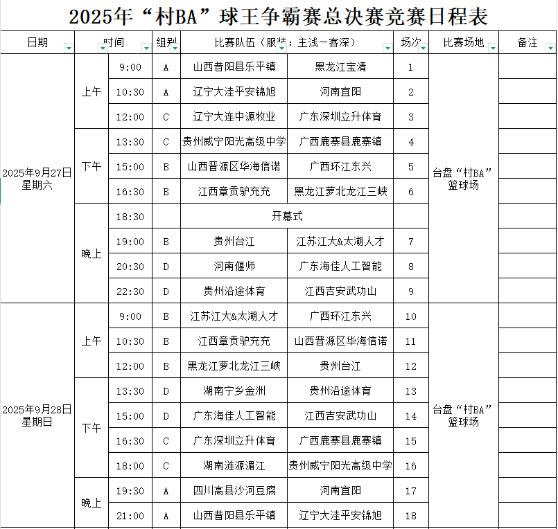 速看!2025年“村BA”球王争霸赛总决赛竞赛日程表