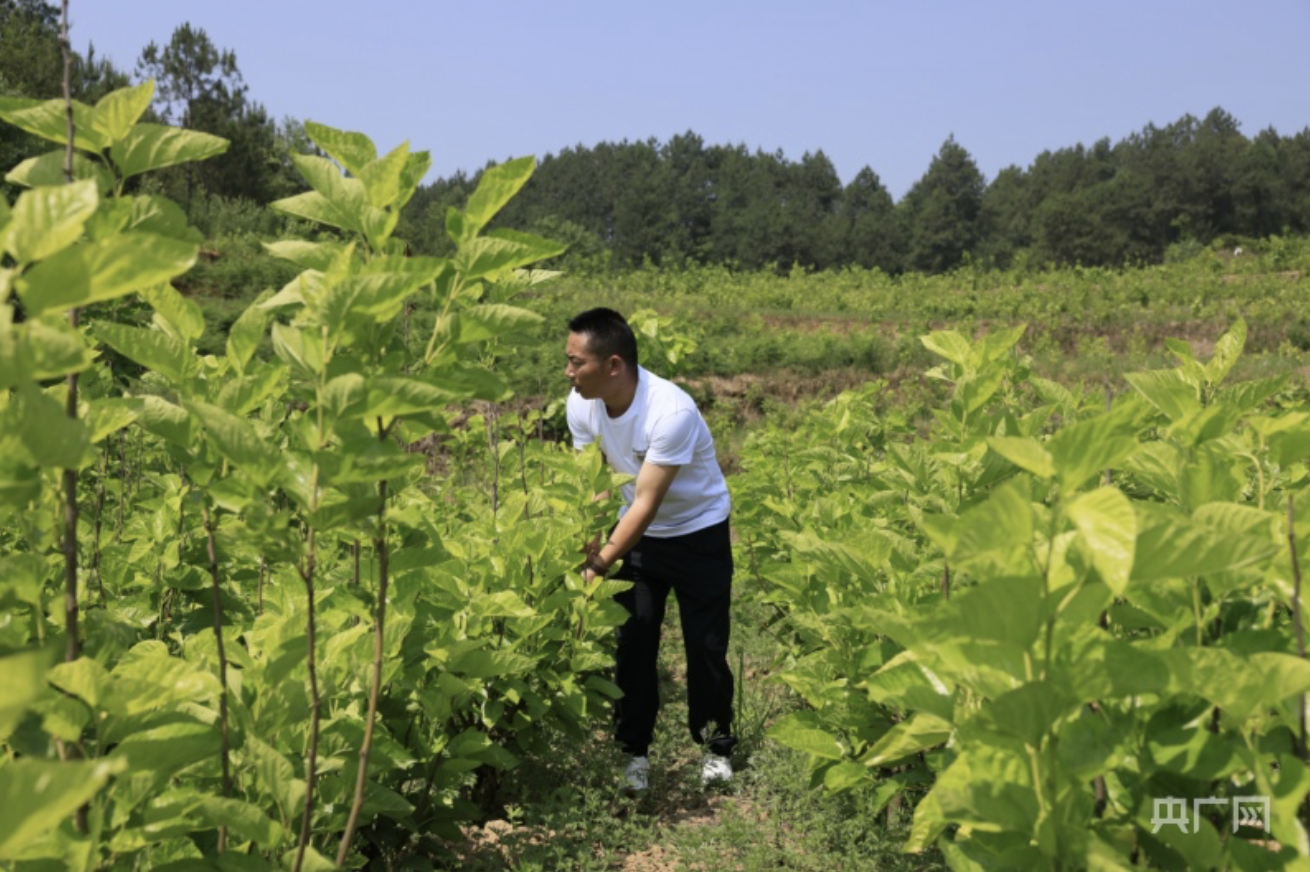 谢晓露在查看桑叶的长势(央广网发 纳雍县融媒体中心供图)