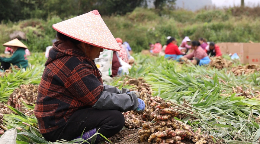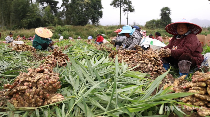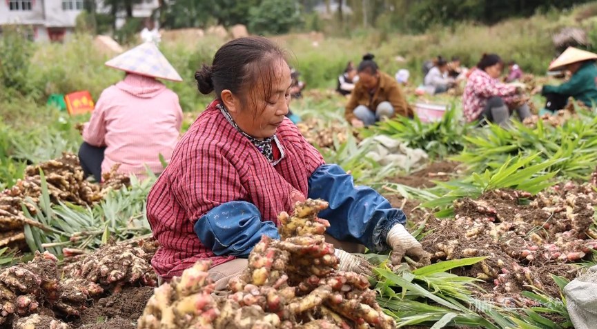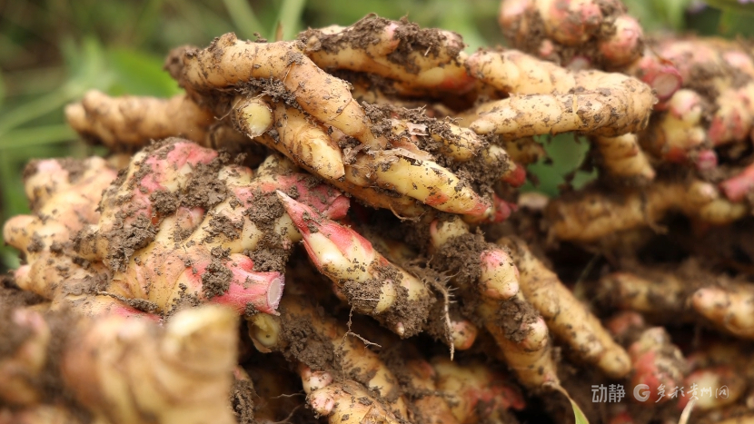 黔东南州麻江县谷硐镇乐埠村的生姜种植基地迎来丰收。村民正忙着采收色泽金黄、体态饱满的生姜,田间地头洋溢着丰收的喜悦。