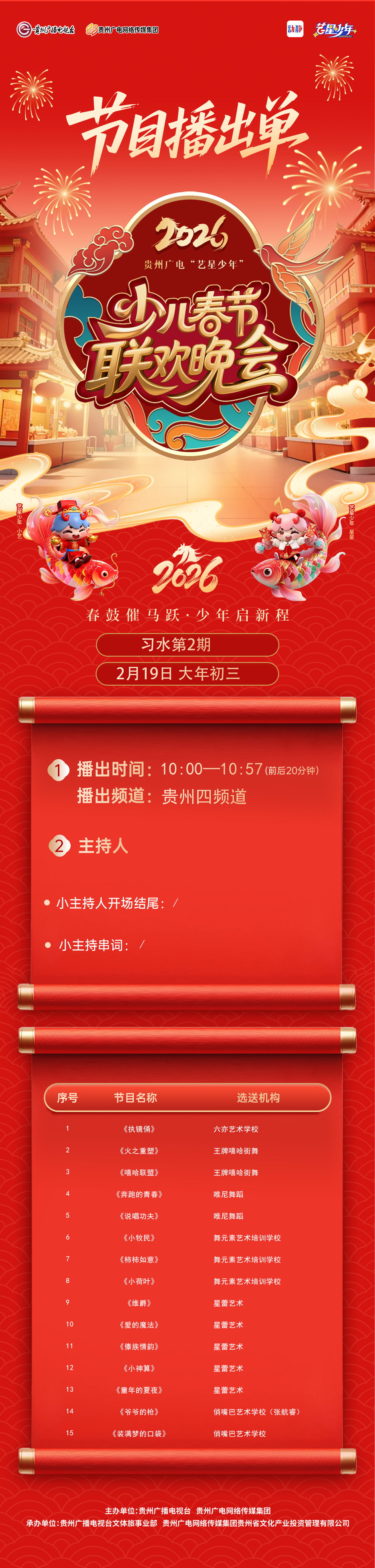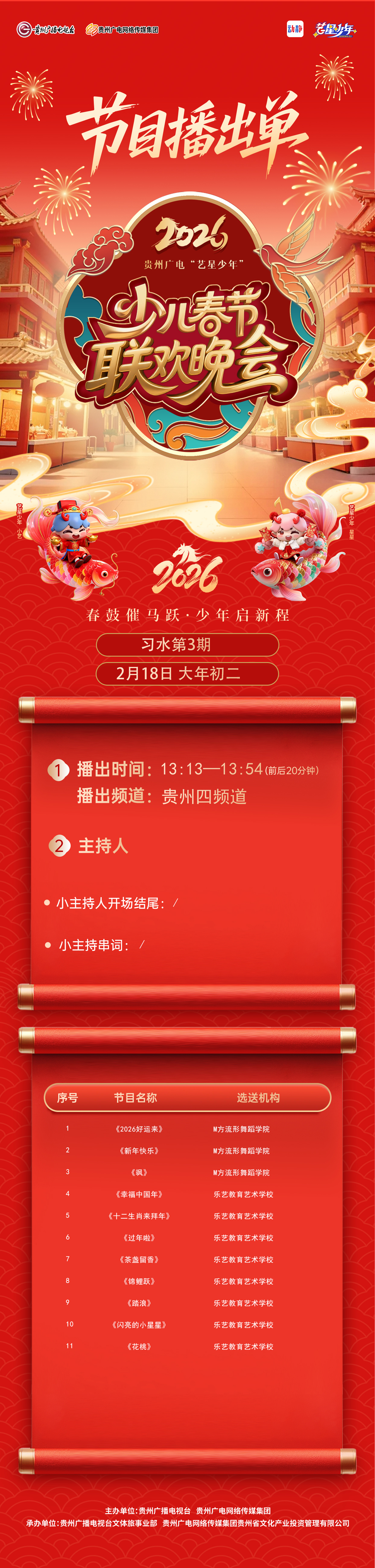 【习水播出通知】贵州广电2026“艺星少年”少儿春节大联欢活动——节目播出通知!!!