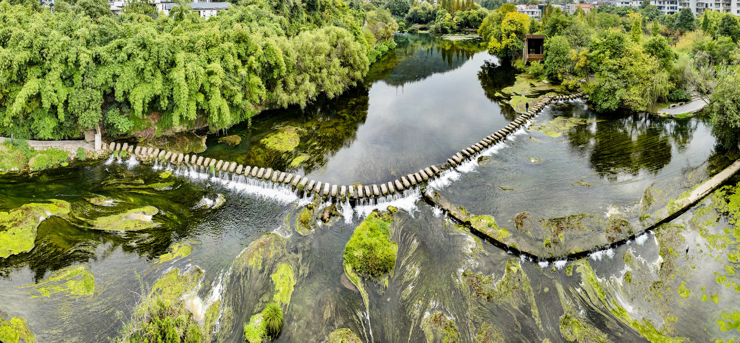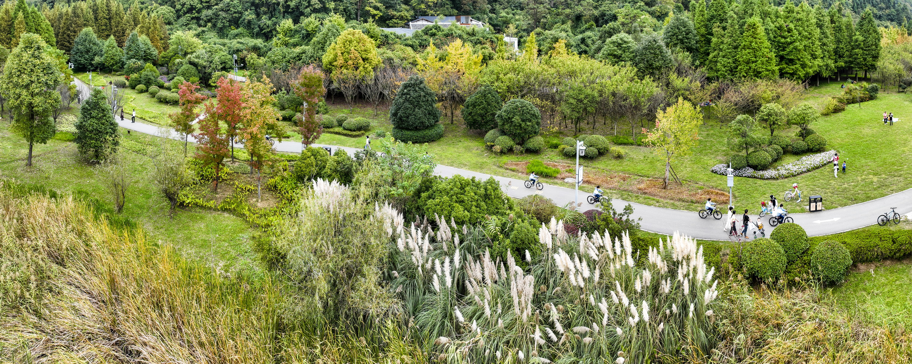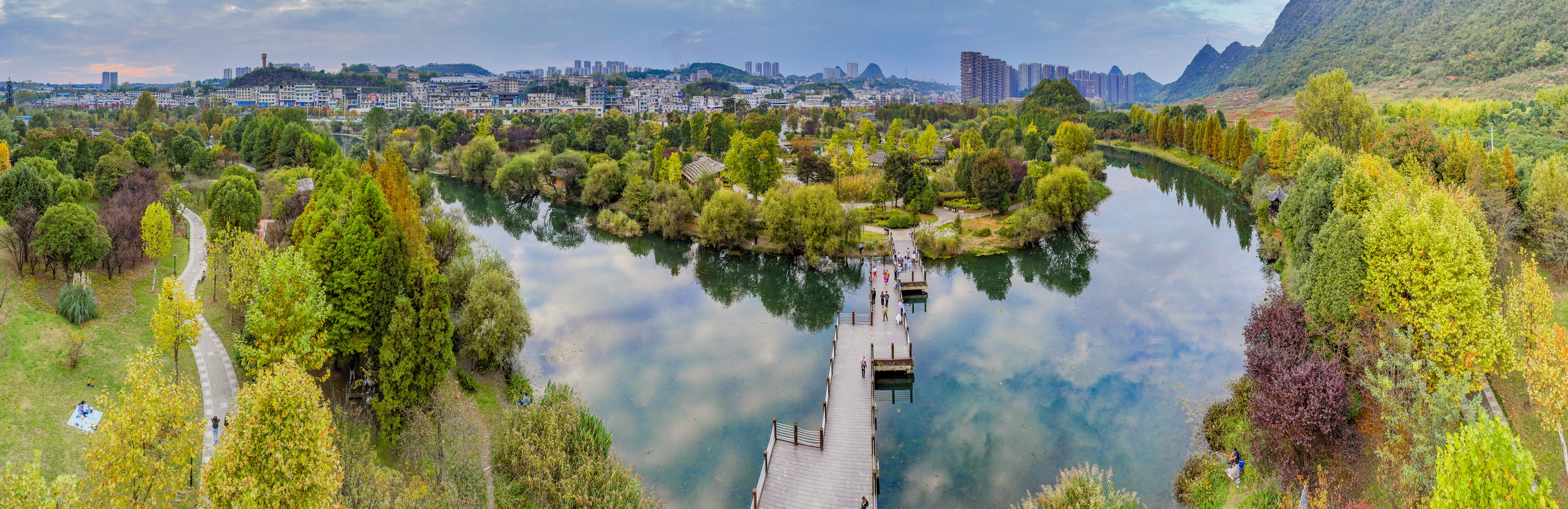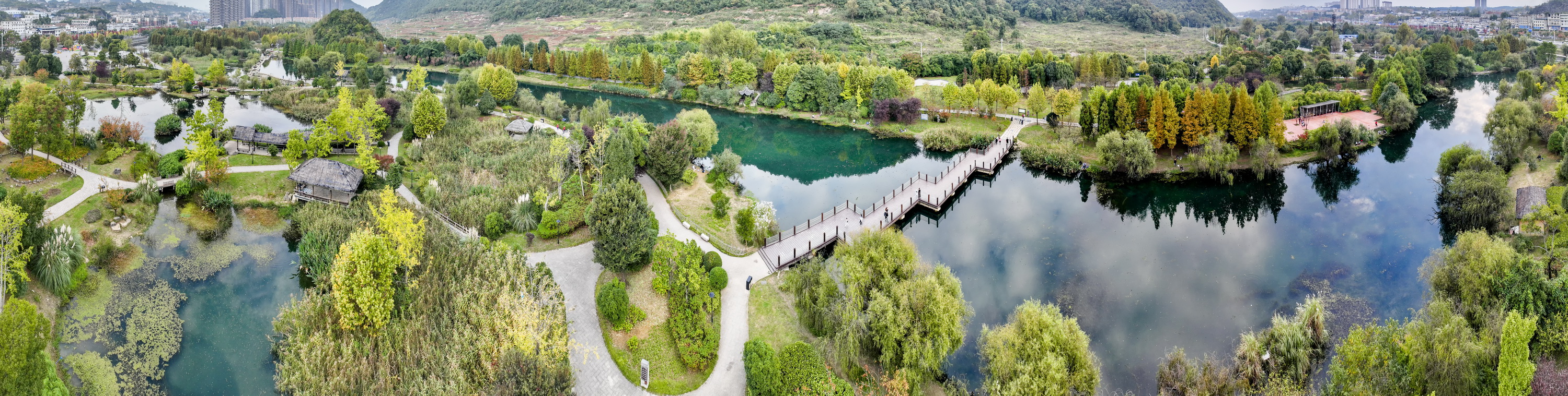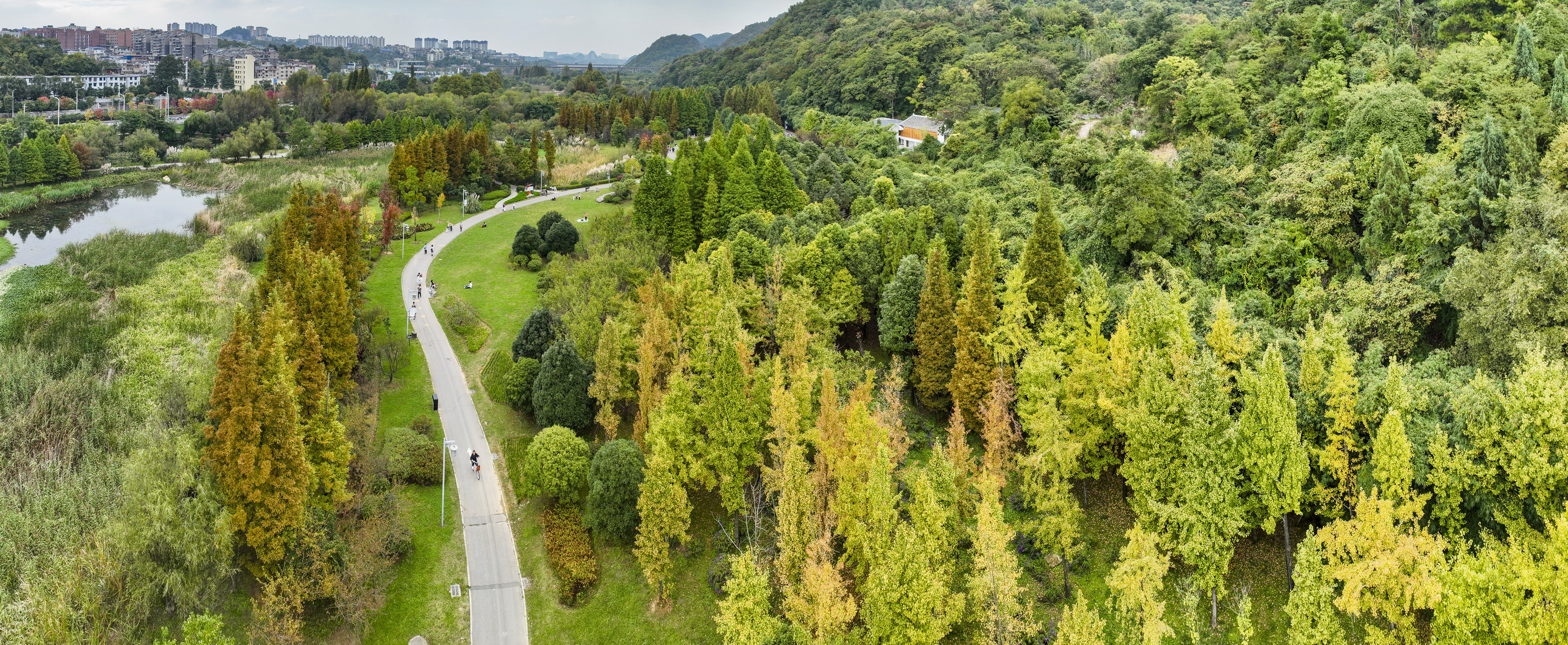10月底,贵阳市花溪河沿岸的十里河滩一眼望去依旧是一片葱茏的绿色,只有点缀其间的红色枫叶和微微泛黄的松枝提醒着人们,时间已经进入深秋时节。