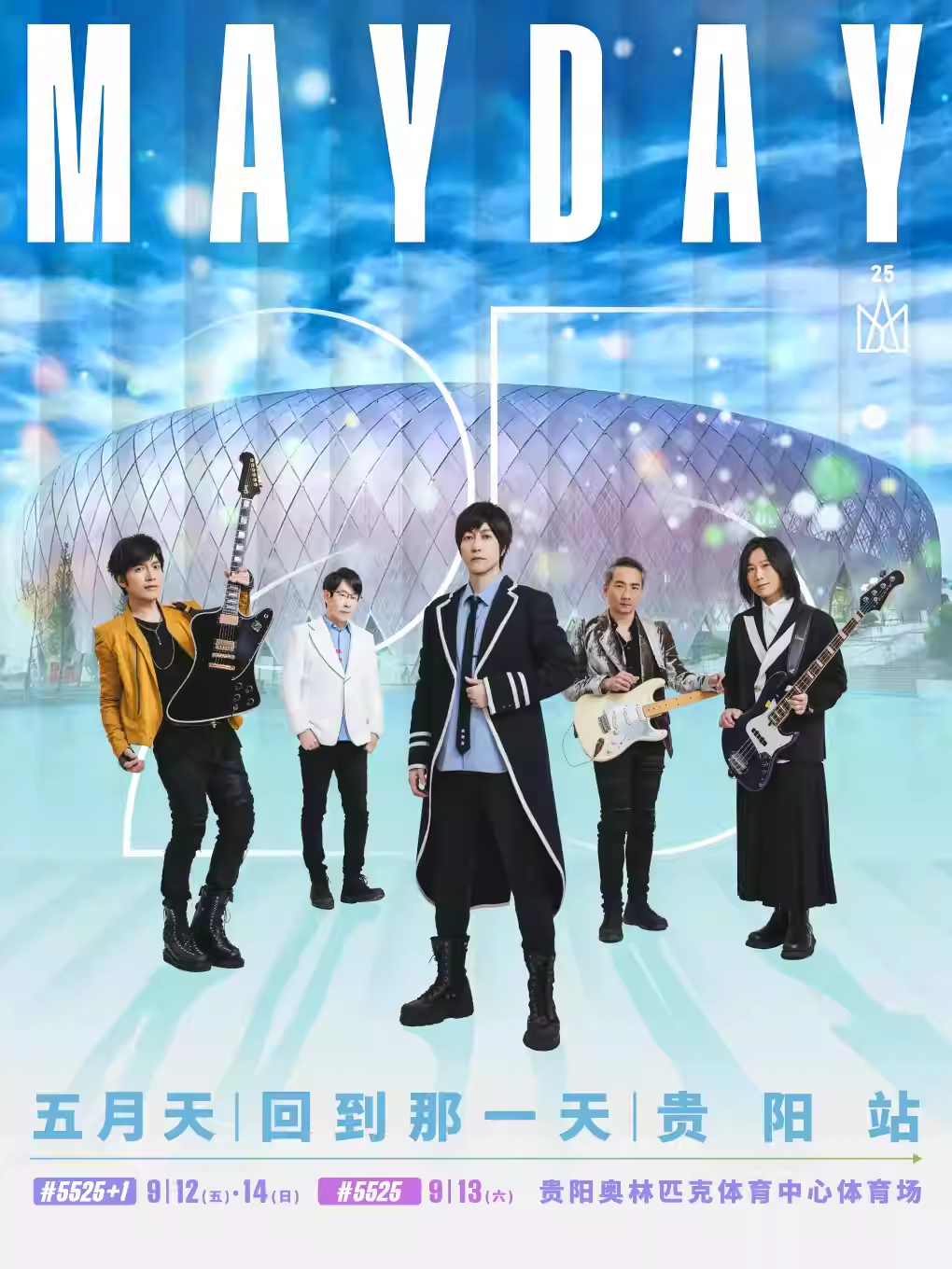 五月天25周年“#5525回到那一天”巡回演唱会贵阳站将于2025年9月12日至14日在贵阳奥体中心体育场连唱三场,以“5525/5525+1双主题”为核心,通过15,640片LED球体屏幕打造的巨型时光机舞台、环场巴士巡游、智慧荧光棒连控灯效等创新设计,搭配《倔强》《干杯》《突然好想你》等跨越九张专辑的经典曲目,为观众呈现一场横跨25年音乐时光的沉浸式万人合唱盛宴。