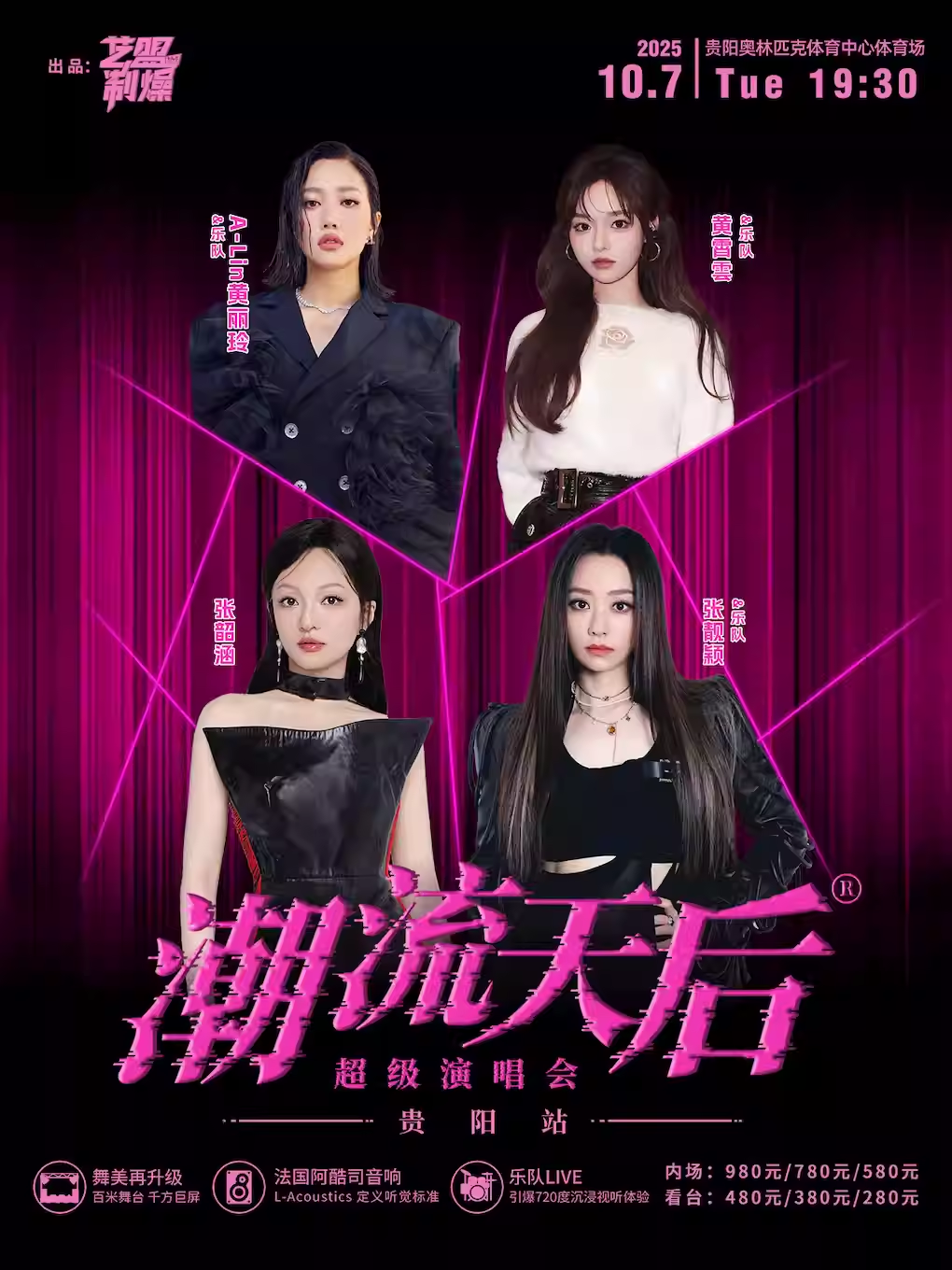 当经典回响遇见崭新声浪,当不同音色交织共鸣,一场属于华语乐坛的特别邀约,将在“爽爽贵阳”金秋开启!张靓颖、张韶涵、A-LIN黄丽玲、黄霄云,四位风格独具的实力歌者,将在贵阳奥体中心的星空下同台。