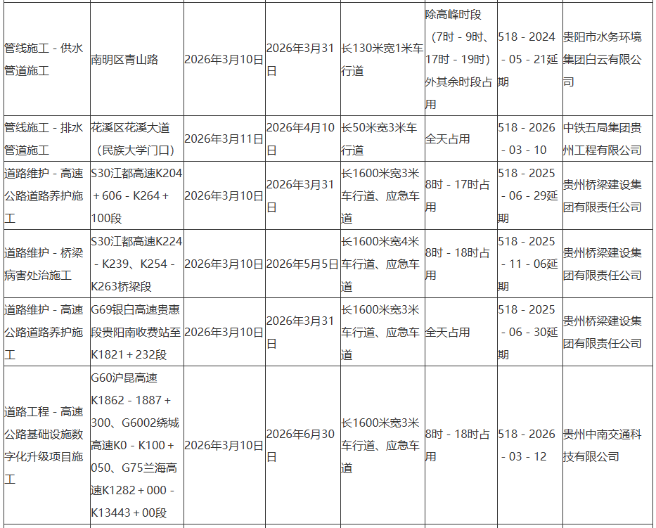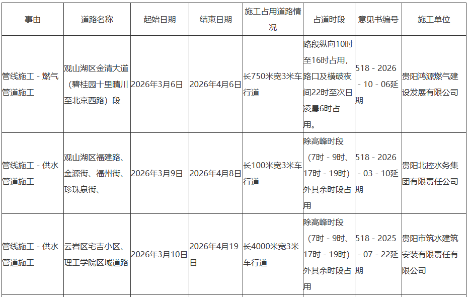 贵阳市南明区青山路等近期临时占用道路施工提示