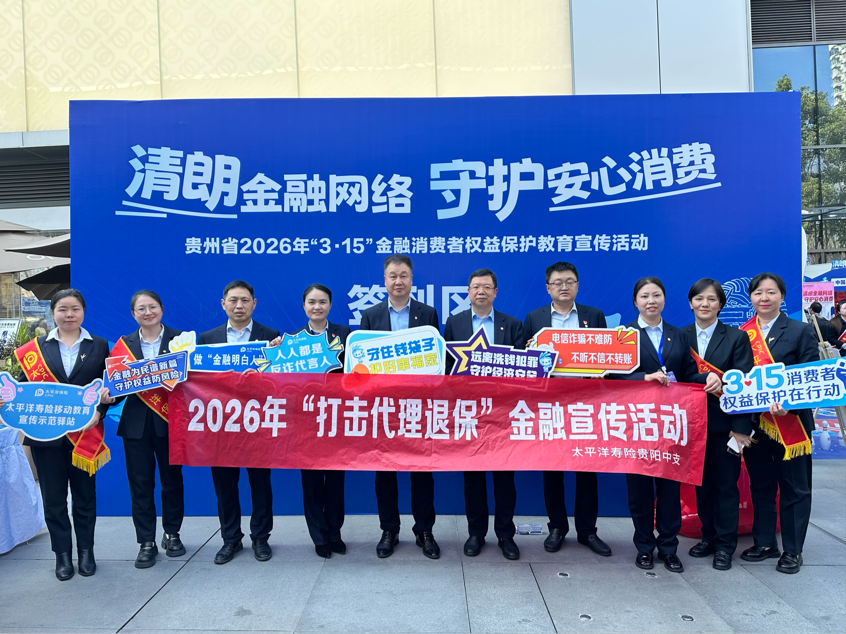 近日,由贵州省保险行业协会主办的“清朗金融网络 守护安心消费”2026年“3·15”金融消费者权益保护宣传活动在贵阳市万象城东广场举行。作为承办单位之一,中国太保寿险贵州分公司积极履行金融企业社会责任。