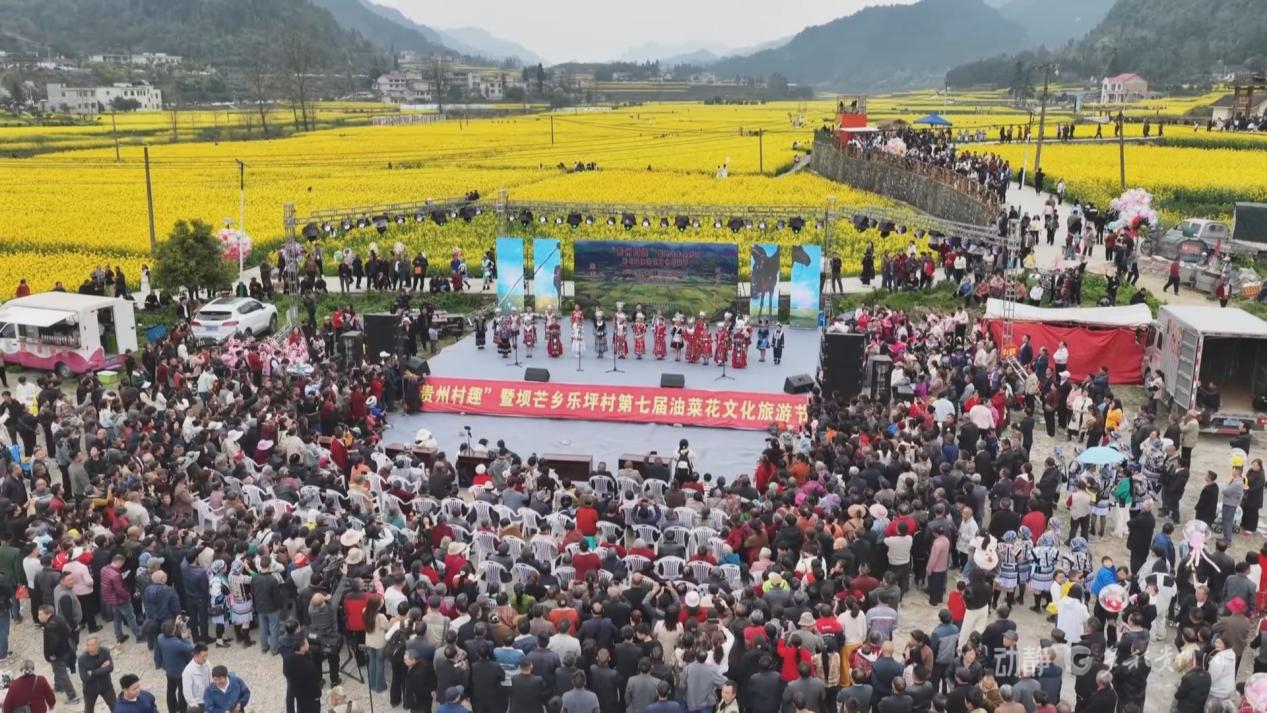 在铜仁市思南县塘头镇,万亩花海与远山、村舍相映成趣。今年,当地将赏花踏青与文化展演、民俗体验、商贸展销相融合,打造乡村旅游品牌。