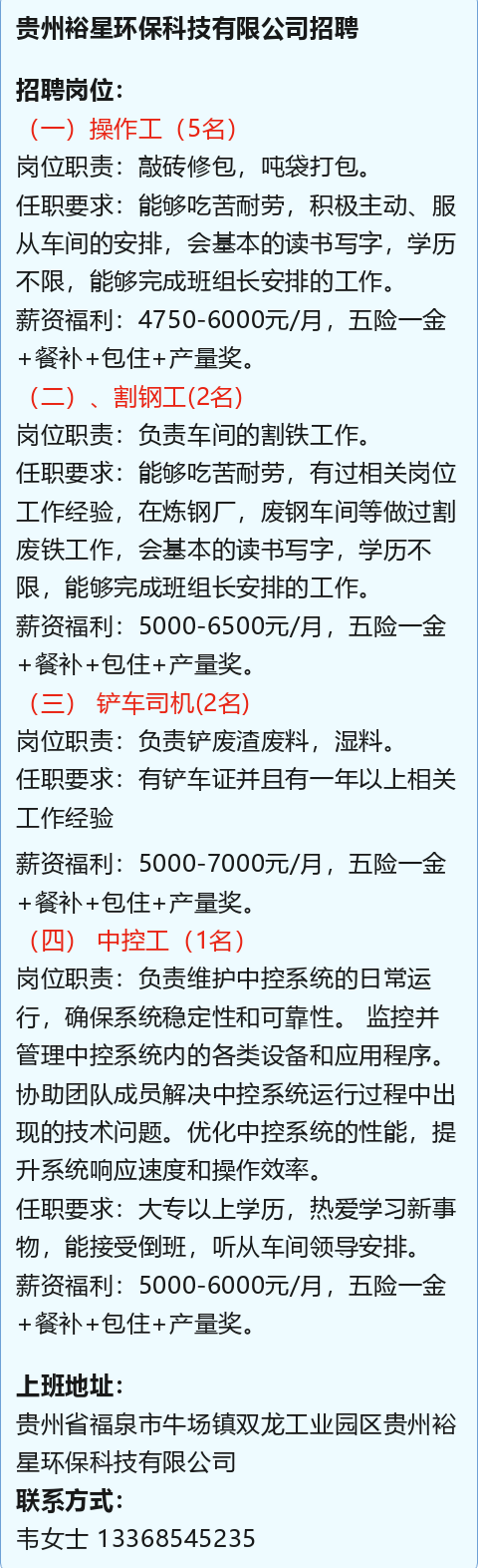 4岗招聘!月薪4750-7000元!五险一金+餐补+包住!