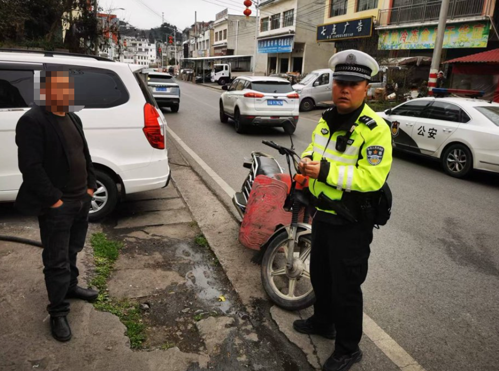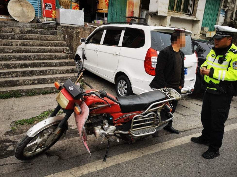 同时,民警还发现驾驶人周某未佩戴安全头盔。