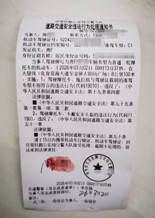 周某骑摩托车去拿快递,却被扣了10分!