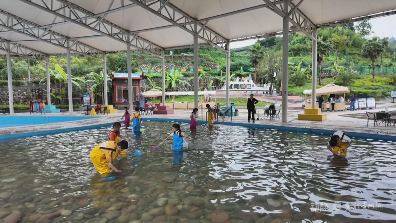 在百车河景区,今年新增的温泉度假酒店二期、亲子乐园蟹宝王国和水云居民宿三大项目已联合开业,丰富的项目让亲子家庭在这里能享受沉浸式度假。在蟹宝王国乐园,家长带着孩子踏进铺满鹅卵石的浅水池,弯腰捕捉小螃蟹和小龙虾。