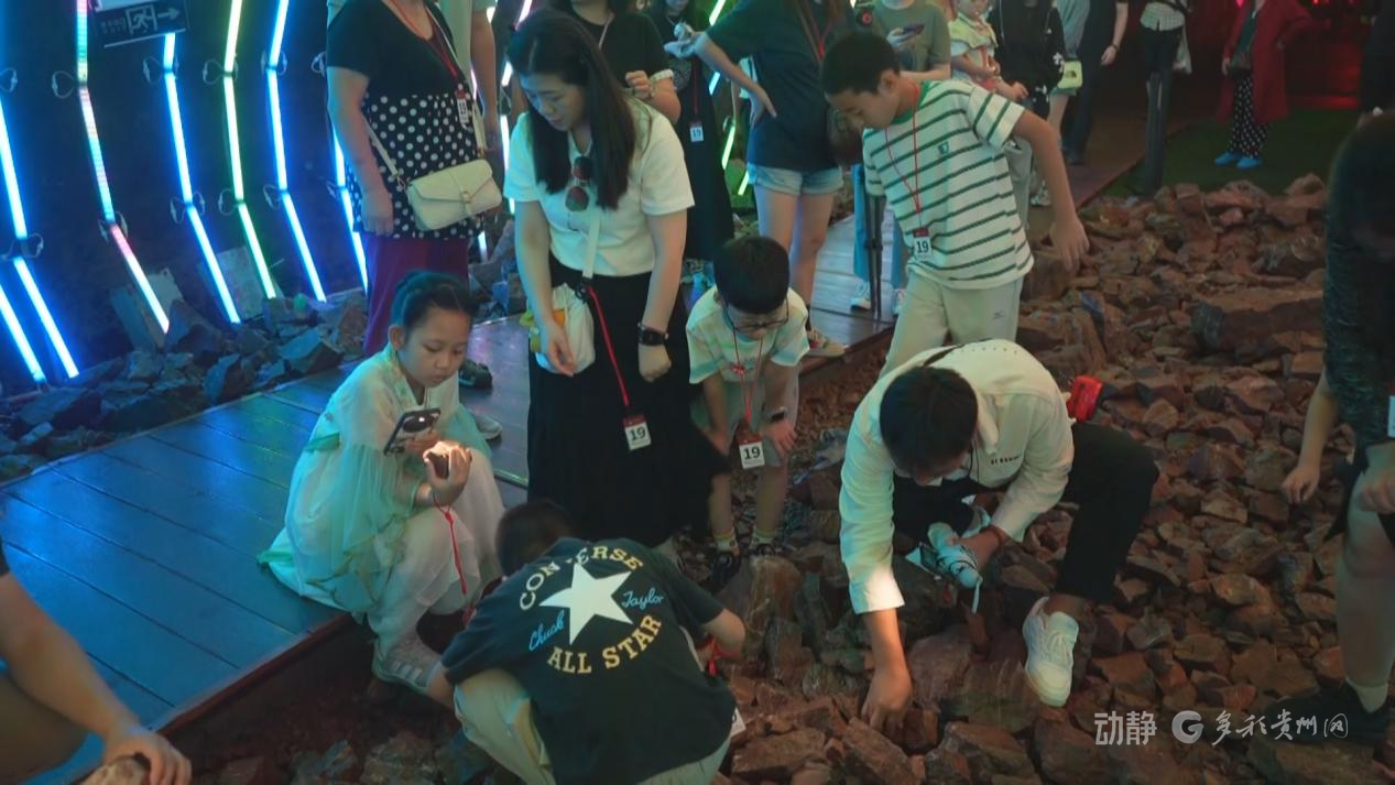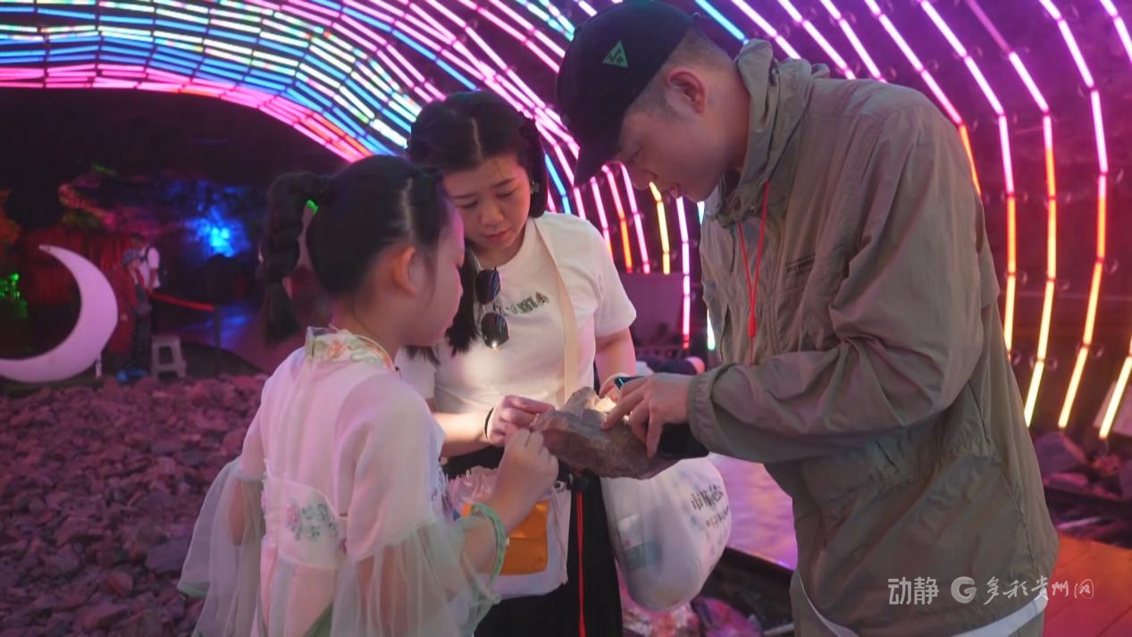 除了亲水,孩子们在朱砂古镇还能化身“小小矿工”,进入岩鹰窝地下长城,寻找矿石中的朱砂。孩子们在讲解员的带领下踊跃提问,积极互动,在趣味实践中体验发现与探索的喜悦。