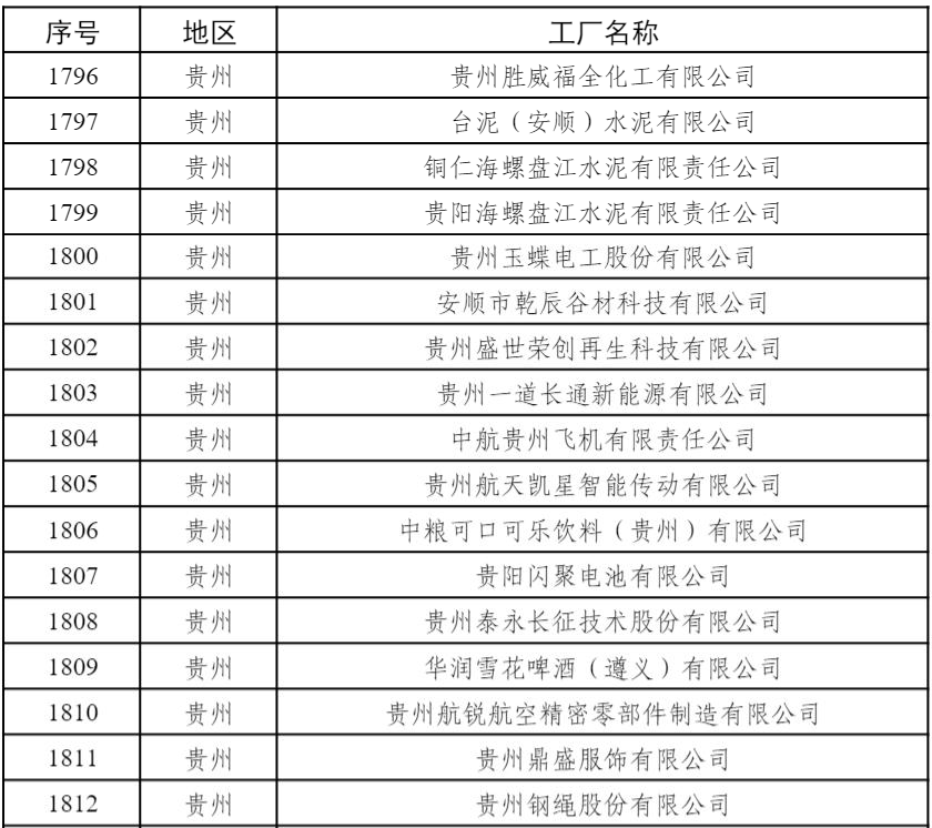 中粮可口可乐饮料(贵州)有限公司、贵州玉蝶电工股份有限公司、贵州钢绳股份有限公司等17家企业入选绿色工厂名单。