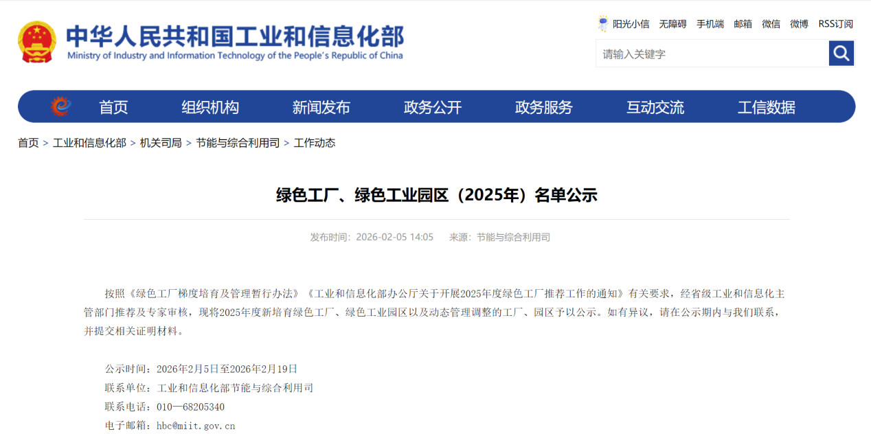 工业和信息化部近日公示了2025年度绿色工厂、绿色工业园区名单。