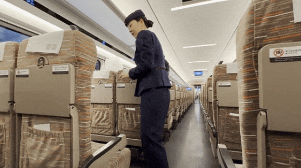 由于动车组列车可以双向行驶,抵达一趟交路终点站返程时,需要调转座椅方向,“犄角”其实是乘务员用来旋转座椅的“小把手”。