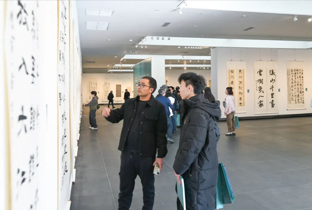 现场人头攒动,观众反响热烈,一位书法专业在校大学生表示,能够近距离欣赏代表江苏、贵州两个省甚至全国尖端水平的书法作品,是一件非常荣幸的事,可以与自己在校平时的学习创作结合起来学习和品味,从中获得了很多启发,也看到了书法艺术的高度和深度,希望以后能有更多机会看到这样高规格的展览。
