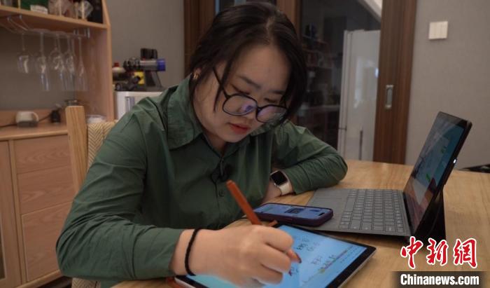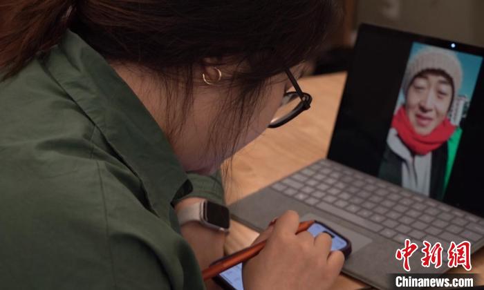 郭国英与线上招募翻译志愿者沟通相关事宜。 蒲文思 摄