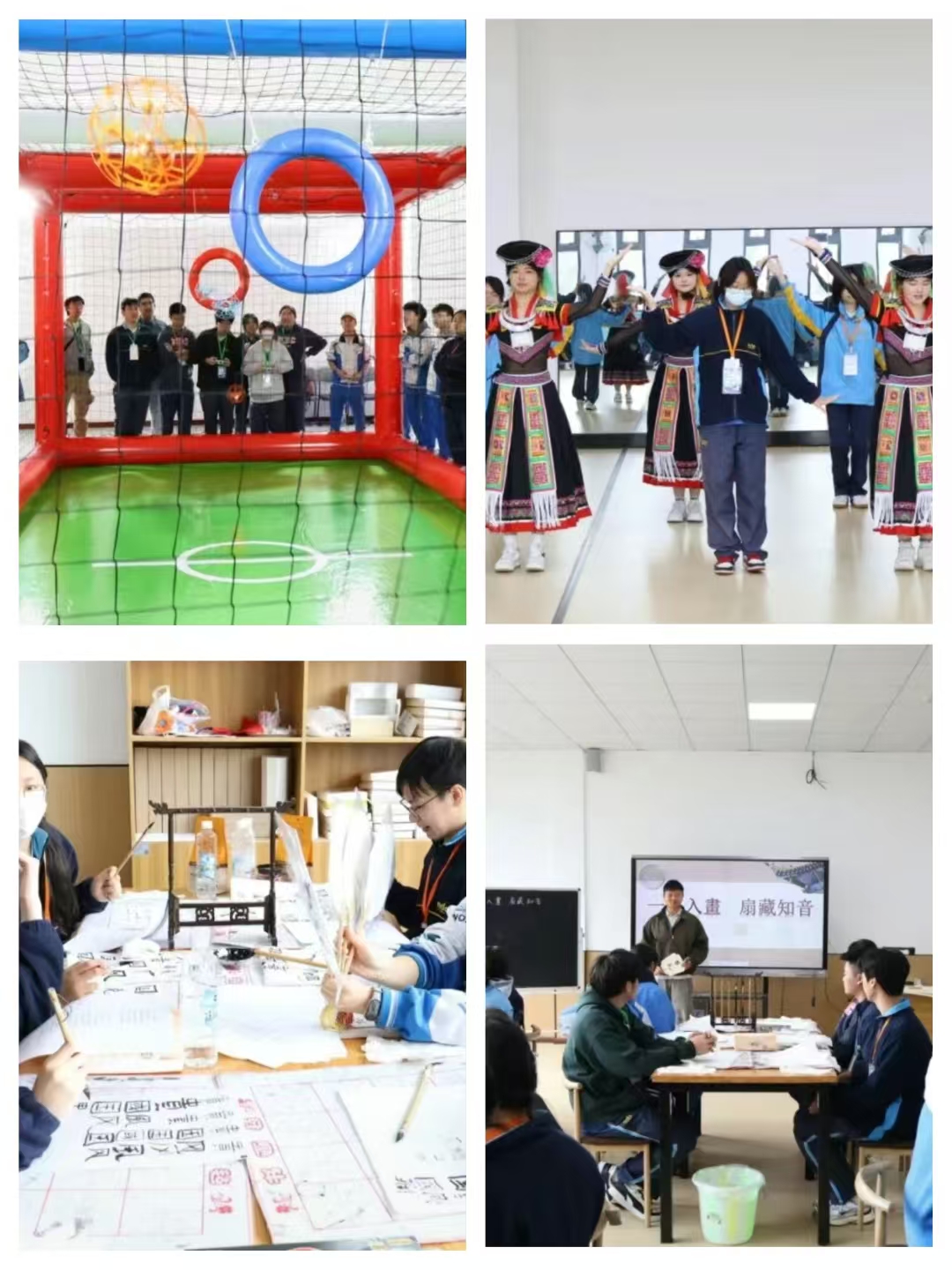 在非遗草木染课堂上,香港学子与九中学生结对合作,亲手体验传统草木染技艺,感受贵州非遗文化的独特魅力;民族舞蹈课上,两地学子翩翩起舞,在欢快的音乐中拉近了彼此距离;书法教室里,翰墨飘香,香港学生在老师的指导下执笔书写,领略中华传统文化的深厚底蕴;无人机足球课程则充分展现了学校科技教育的创新成果,香港师生在操控无人机足球的过程中,感受科技与体育融合的乐趣。
