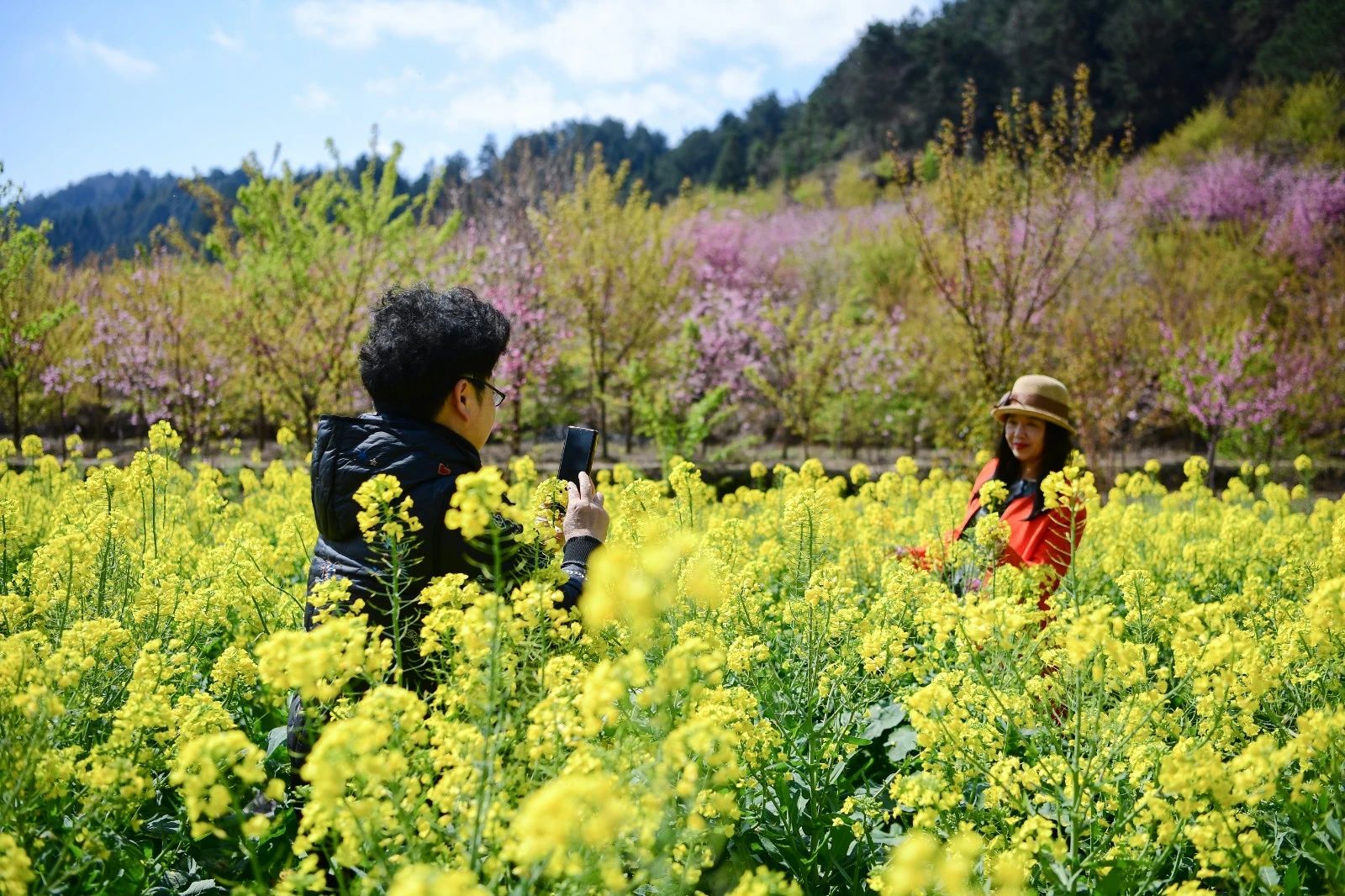 山环水绕间,人行花海中