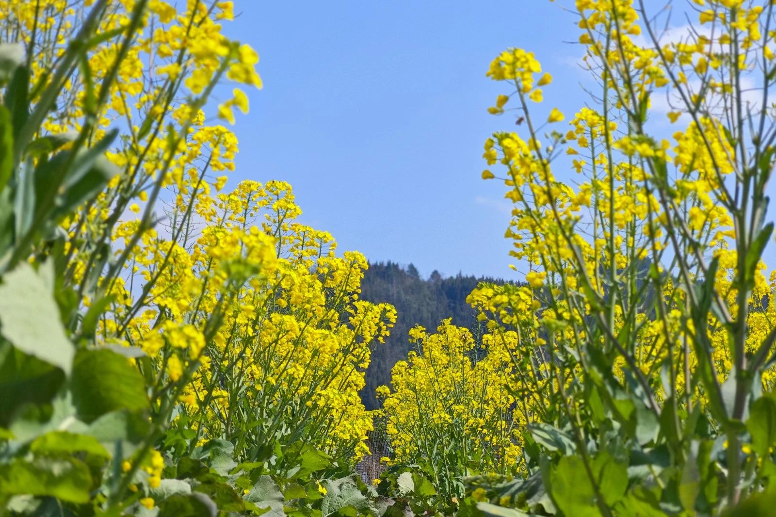 天空的湛蓝色与油菜花的金黄色交织出春天的缤纷色彩