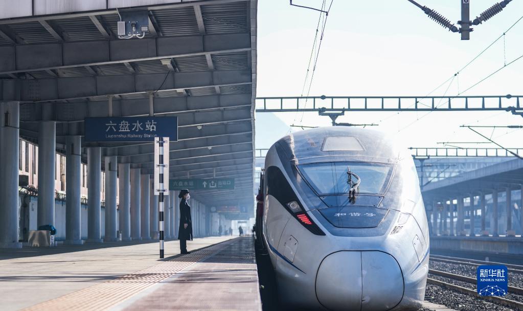 1月7日,列车准备从六盘水站驶出。新华社记者 陶亮 摄