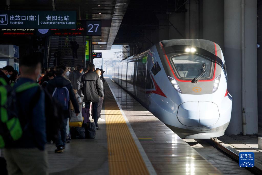 1月7日,旅客在贵阳北站乘车。新华社记者 刘续 摄