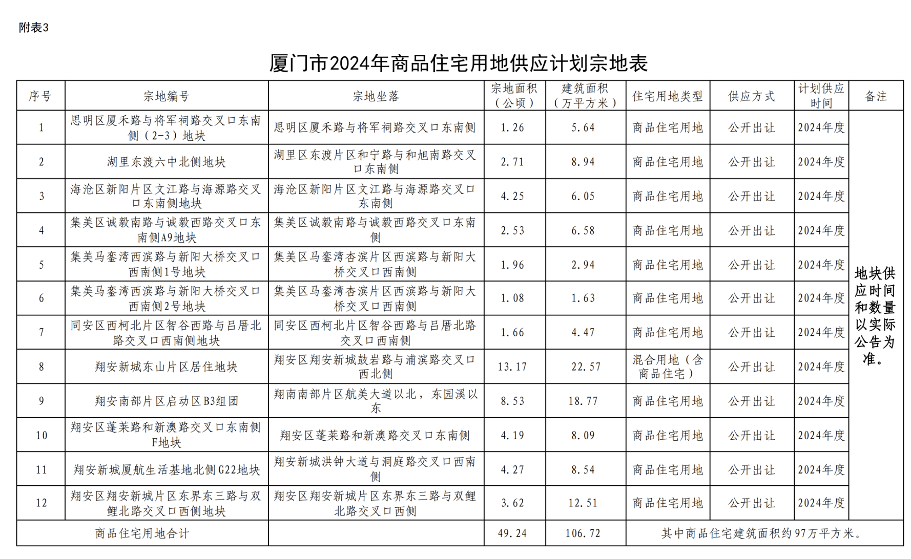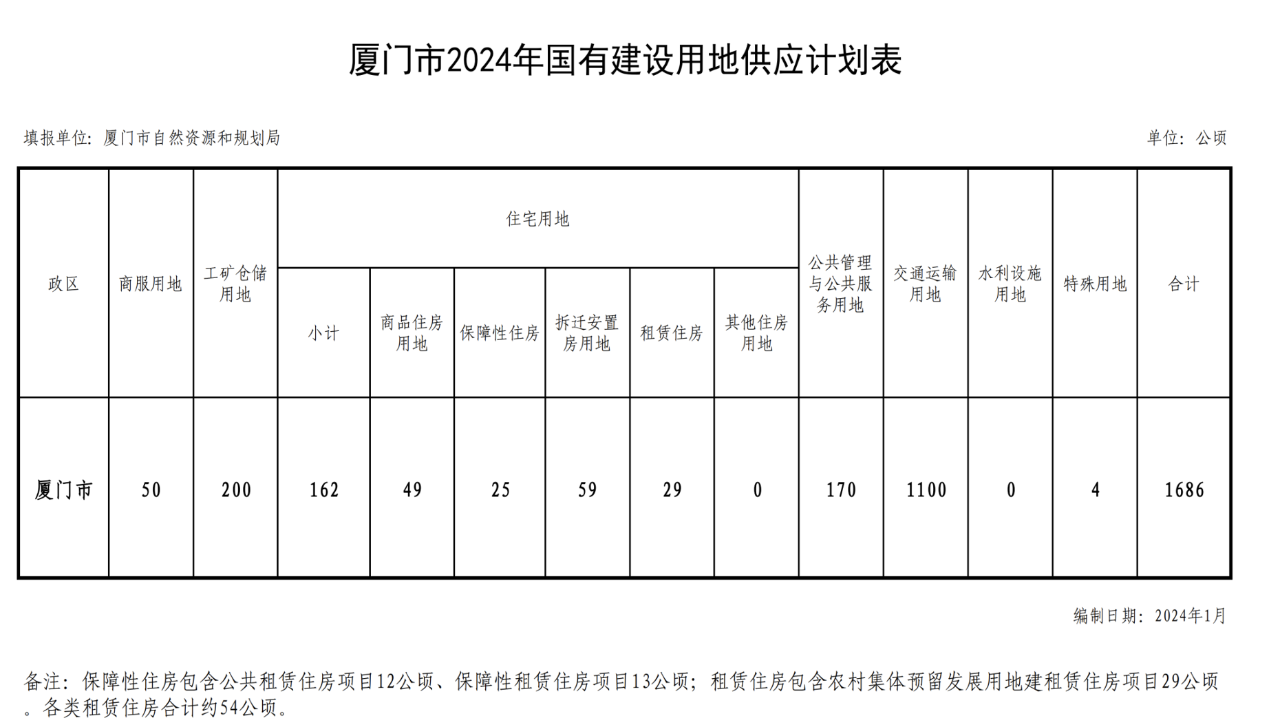 3月5日,福建省厦门市发布2024年国有建设用地供应计划方案。