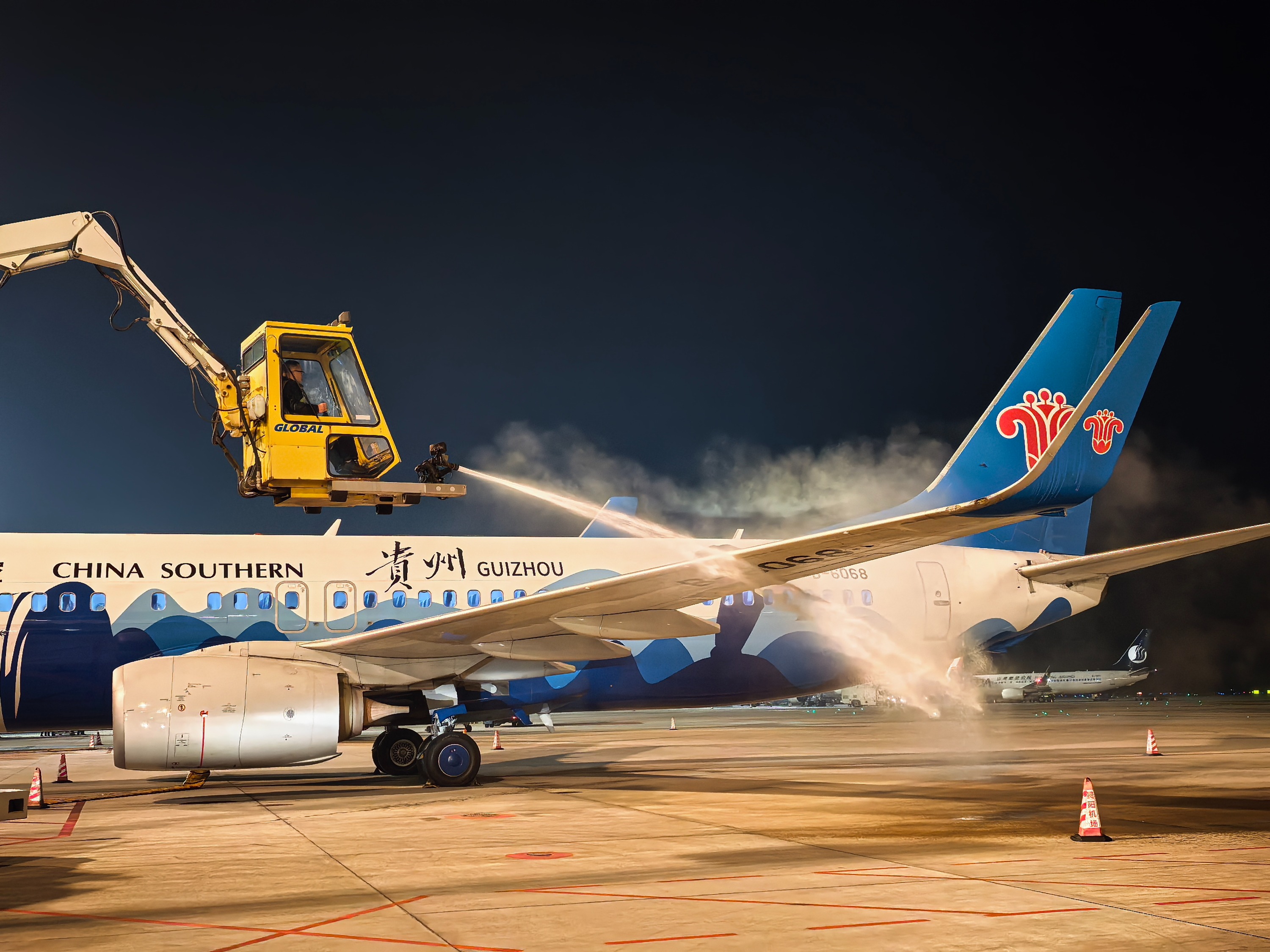 寒霜袭黔,南航贵州机务打响飞机除冰“闪电战”