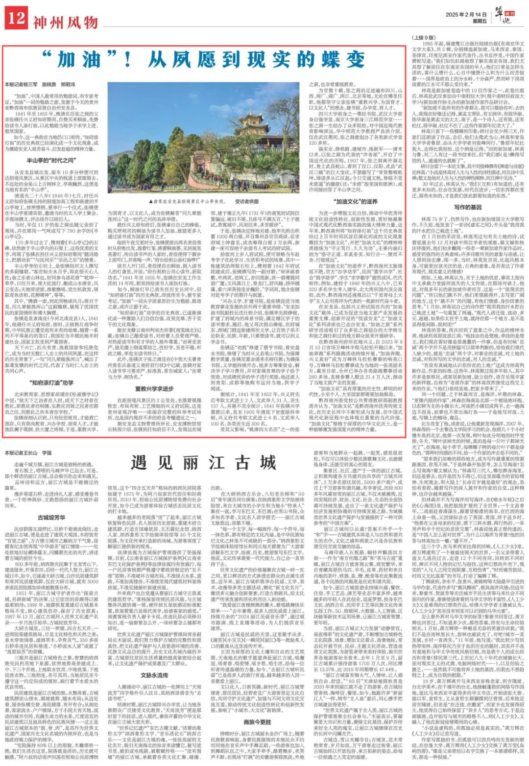 2月14日,《新华每日电讯》刊发报道《“加油”!从夙愿到现实的蝶变》。报道介绍,“加油”一词的勉励之意,发源于今天的黔西南布依族苗族自治州安龙县。全文如下: