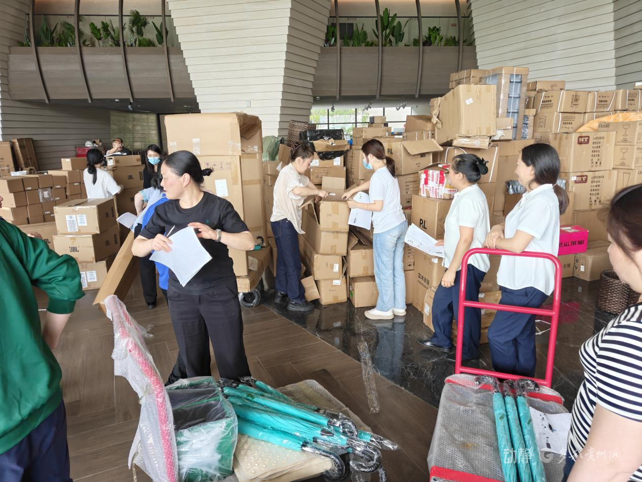 当成批的货物堆放在酒店大堂里,第一反应可能是慌乱。但花江大桥千山奕境酒店的团队,没有让慌乱主导局面。