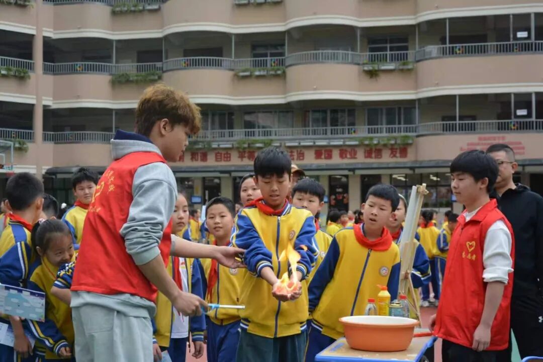 在贵阳市环西小学操场上,“火焰掌”展示区成为全场焦点。“快看,手掌起火了!”一团火焰在学生掌心跳跃升腾,围观的同学屏息凝神、惊呼连连。志愿者一边演示,一边讲解火焰控制的安全要领与背后的科学原理,让同学们明白:唯有科学规范的操作,才能真正解锁火焰带来的独特乐趣。