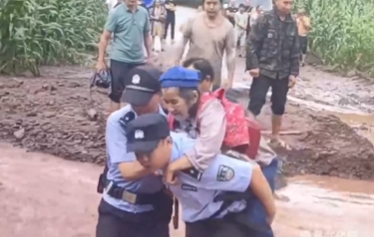 众人使出浑身力气徒手推车