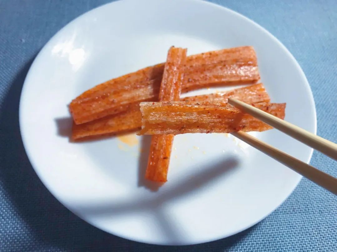 辣条滋味丰富,有香辛料的香味、盐的咸味、糖的甜味、油脂的脂香味,还有刺激食欲的辣味。