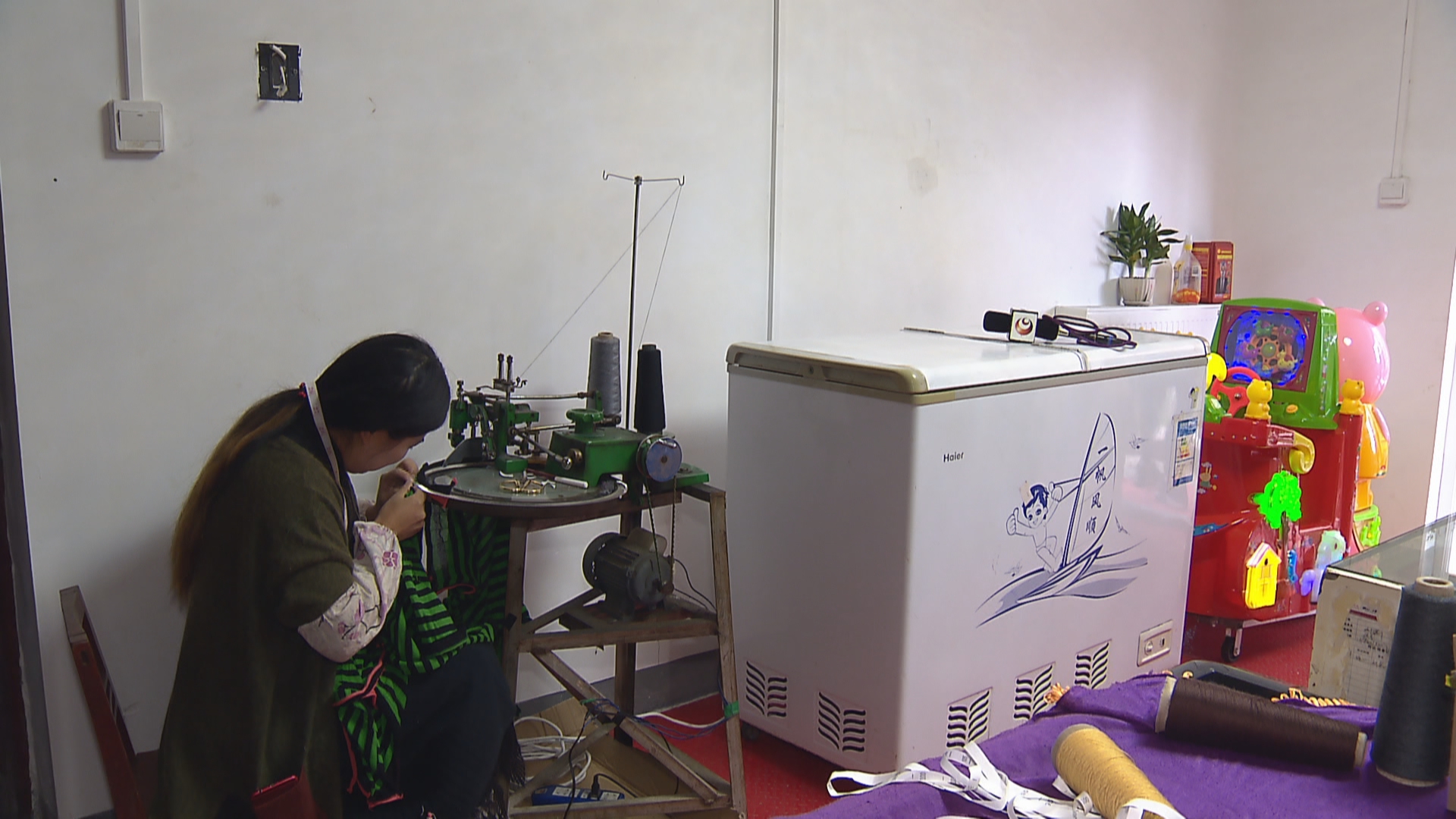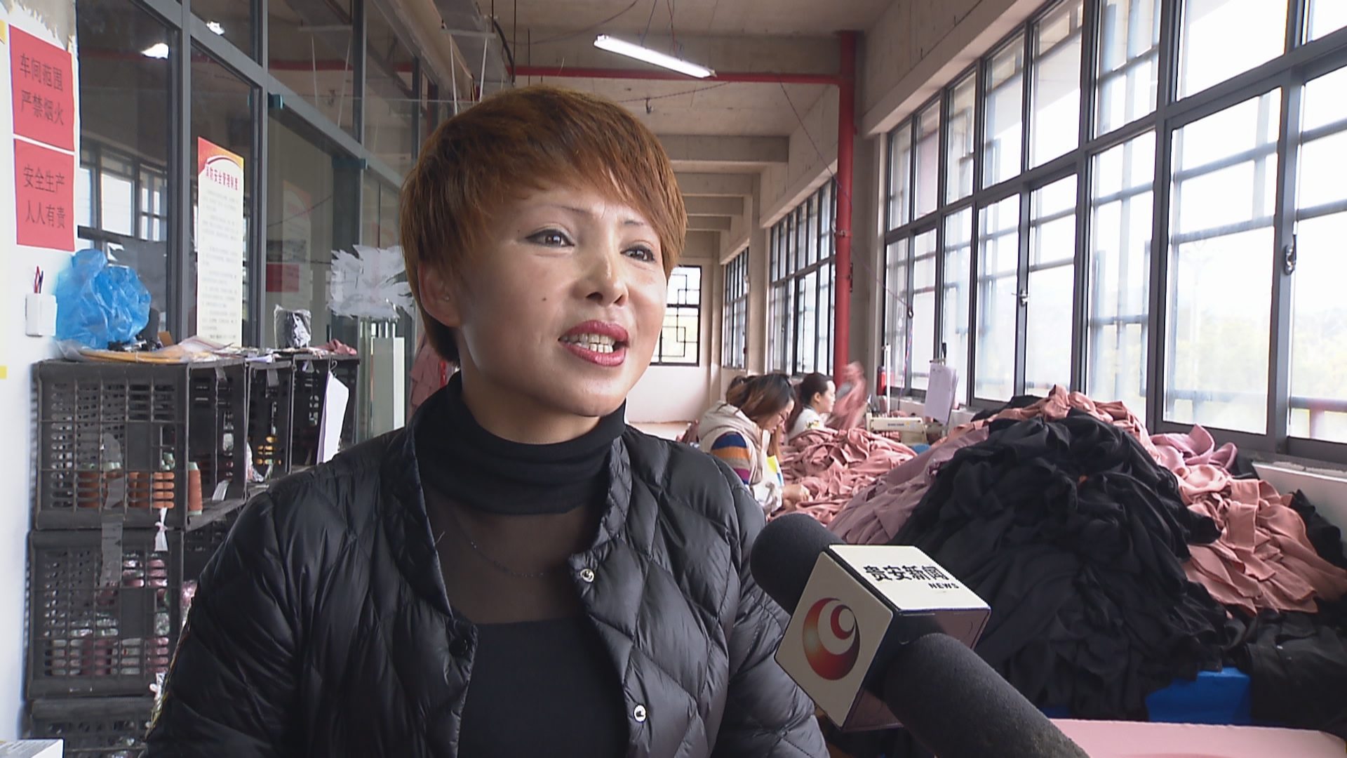 易丽君说:“我们很多人背了很多债,日子也是挺艰难的,所以我们就搞了这么一个车间,既可以让他们带小孩又可以上班,起码不种庄稼但也不缺那口饭吃。”