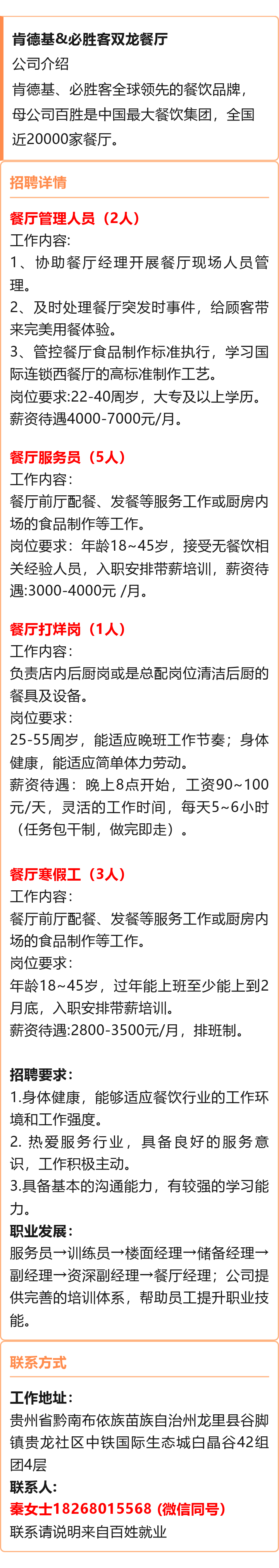 肯德基&必胜客招聘!月薪可达7000元!有寒假工岗位!